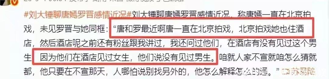 2026日晚,狗仔刘大锤开启直播,直接挑明了某件事。他手持所谓的酒店记录,面对镜头说道:唐嫣近期在北京拍摄新剧,一直住在剧组附近酒店,没回北京的婚房。