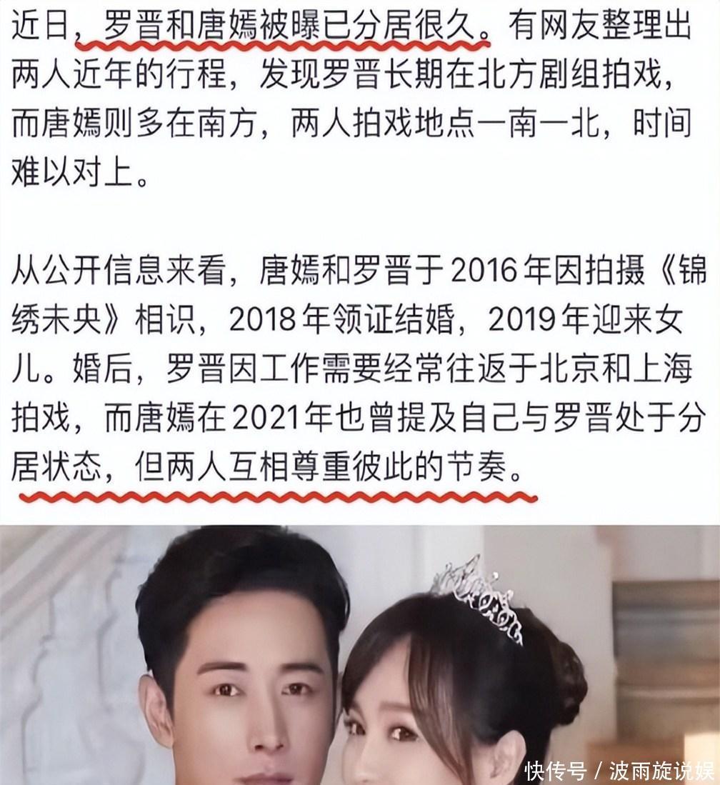 大家都认为,这对夫妻感情挺好的,只是平常比较低调,又经常分隔两地罢了。那时,罗晋在大家眼中是“好丈夫”,唐嫣则是“贤妻”,这对夫妻的形象堪称完美。谁能料到,仅仅过了三个月,剧情便出现了令人震惊的大反转。